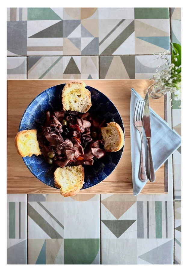 La cucina è un inno all’Adriatico: piatti di pesce freschissimo, antipasti ricchi e colorati, primi equilibrati e grigliate che raccontano il sapore del mare. Ogni portata è preparata con ingredienti selezionati e servita con eleganza, accompagnata da un’accurata selezione di vini locali e nazionali.